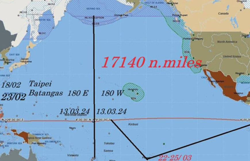 Laivo „Brandal“ 2024 metų sausio-balandžio reiso maršrutas.