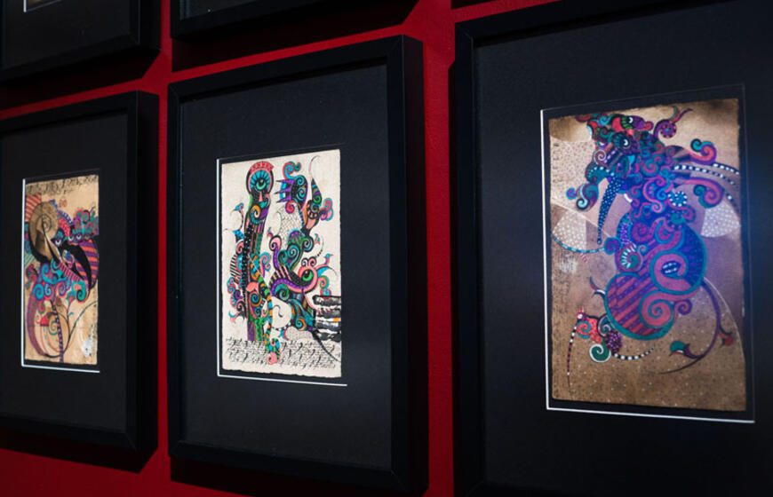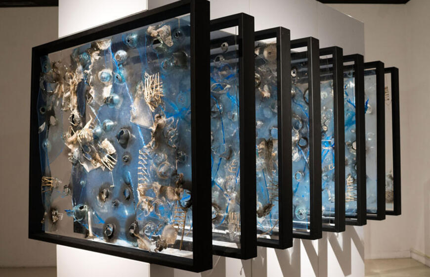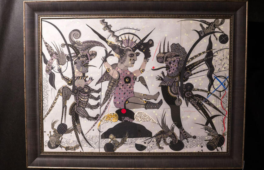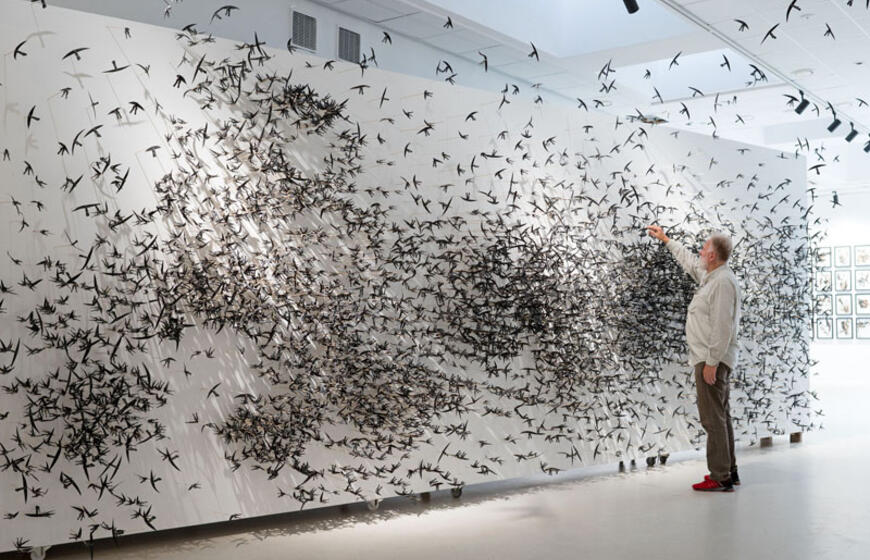 Instaliacija „Turintis sparnus“. „Joje pavaizduoti pusiau paukščiukai, pusiau angeliukai ar vabzdžiukai. Jie yra pasaulinėje sumaištyje. Jie bando atrasti save, iškilti iš šito bendro kilimo arba atvirkščiai - susilieti į dėmes. Žiūrint į šią instaliaciją kyla jaudulys, sumišimas“, - komentavo A. Klemencovas.