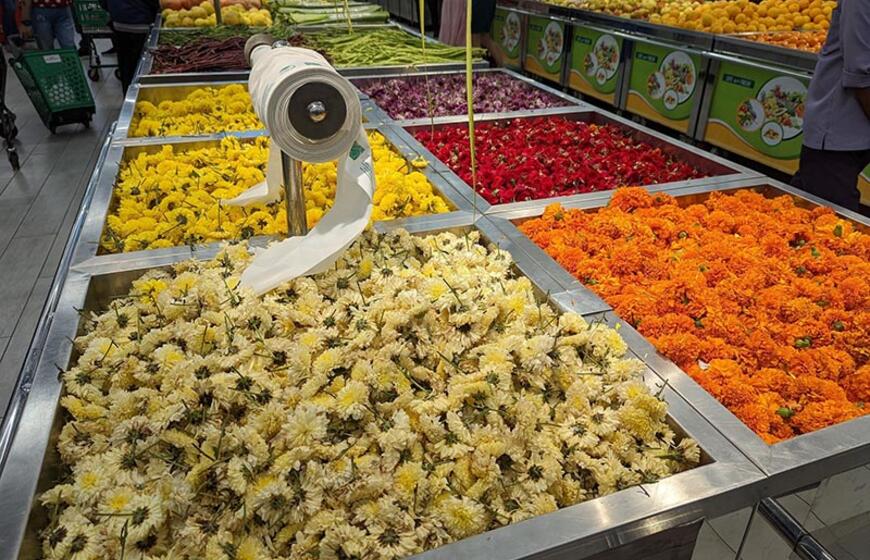 © Kadangi Indijoje šventės labai populiarios, o nė viena šventė neapsieina be gėlių, jų galima rasti net prekybos centruose.