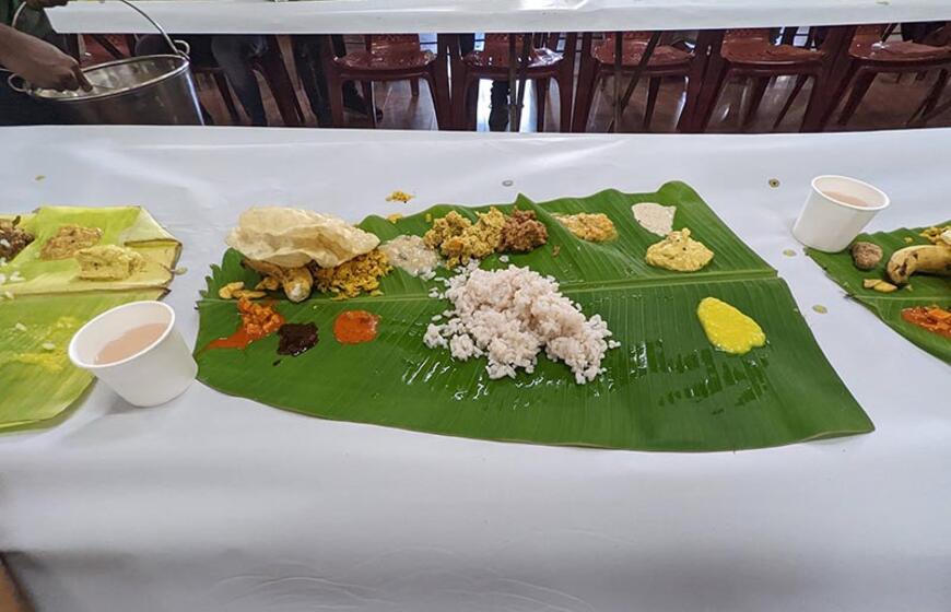 © Vestuvių meniu: kiekvienas svečias gauna po tokį banano lapą su tradiciniu maistu.