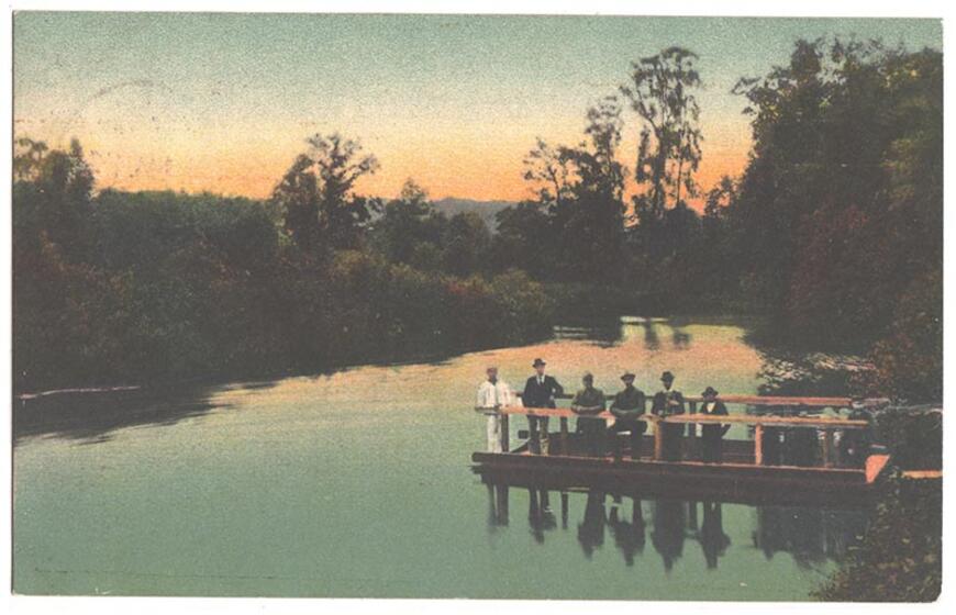 Pats keisčiausias Mėmelyje buvo Tauralaukyje per Dangę įrengtas šaudyklinis tiltas (1911 m. atvirukas), kuriuo žmonės persikeldavo į kitą krantą tempdami lynus. Deniso NIKITENKOS kolekcija.