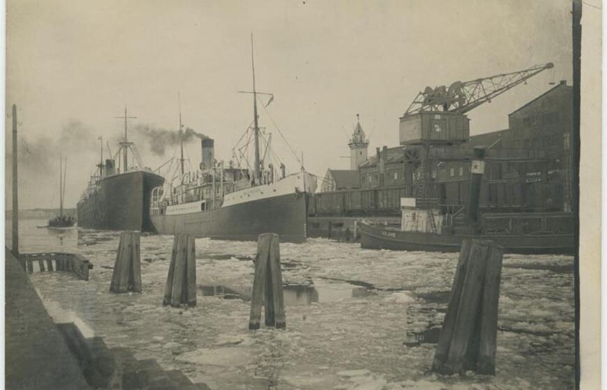 © Laivai „Baltriger“ ir „Roland“ uoste, 1929 m. balandžio 10 d. KLAVB, Rautenberg archyvo nuotr.