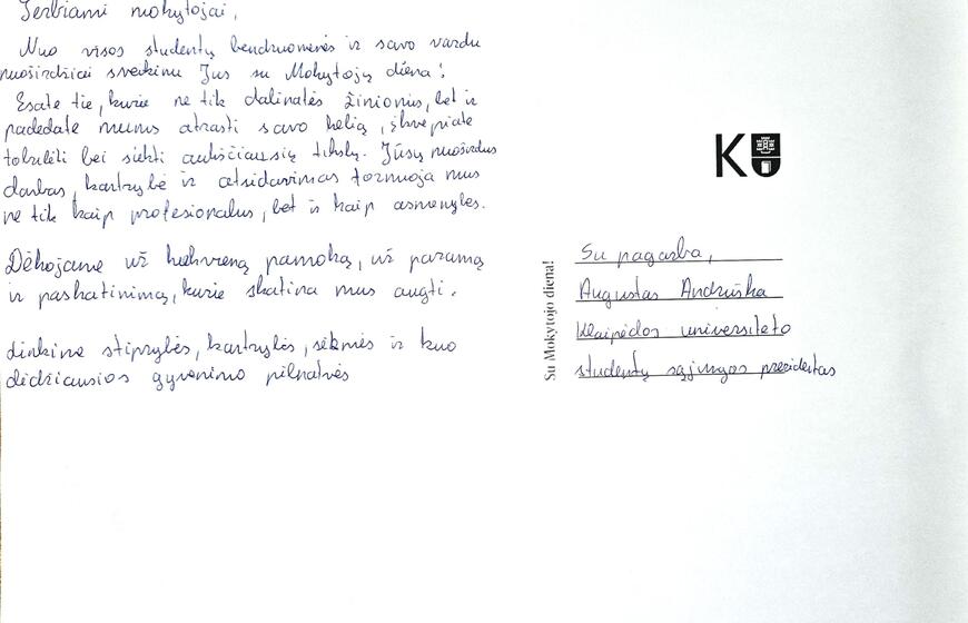 Pasaulinės mokytojų dienos išvakarėse Klaipėdos universiteto bendruomenė inicijuoja akciją „Kai laiku išgirsti mokytoją...“ Skaityti straipsnį Skaityti straipsnį Skaityti straipsnį Skaityti straipsnį Skaityti straipsnį Skaityti straipsnį Skaityti straipsnį Skaityti straipsnį Skaityti straipsnį Skaityti straipsnį PreviousNext