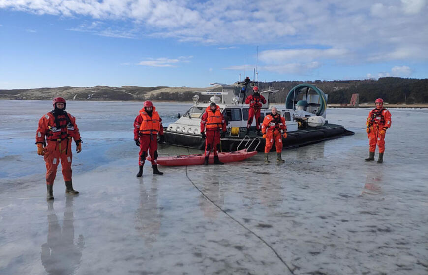 © GREITIS. Pasieniečių laivai ant oro pagalvės „Christina“ ir „Viesulas“ plaukdami vandeniu gali pasiekti 35 mazgų, o žiemą ant kieto ledo - iki 50 mazgų greitį.