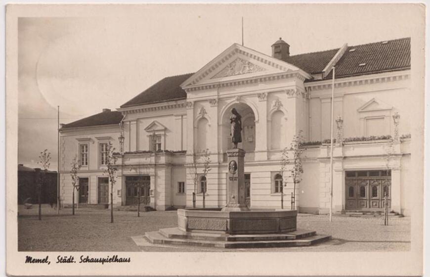 © 1941 m. karo paštu išsiųstas atvirukas. Galima įsitikinti, jog dabar Teatro aikštėje stovinti skulptūra kone identiška originalui. Roko BORUSEVIČIAUS kolekcija.