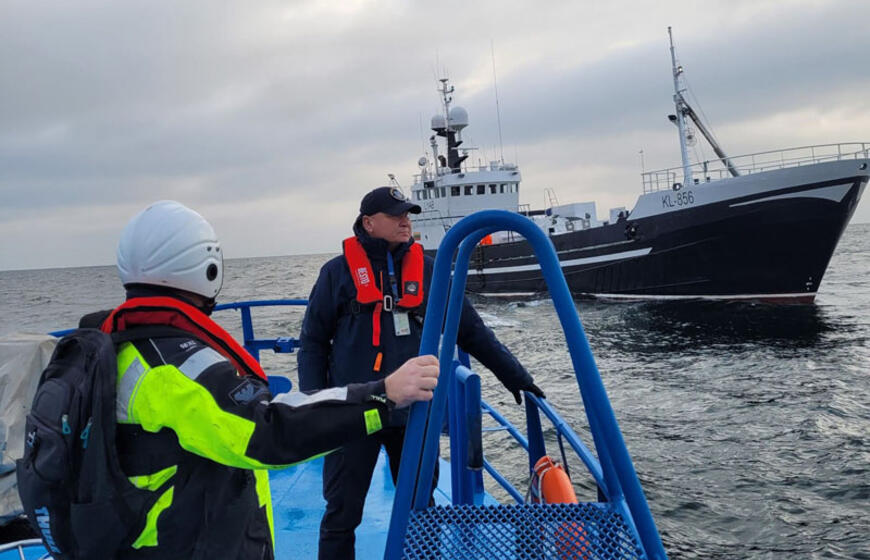 © KONTROLĖ. Žuvininkystės kontrolės departamentas kontroliuoja ir tolimųjų žūklės rajonų laivus. Žuvininkystės kontrolės departamento nuotr.