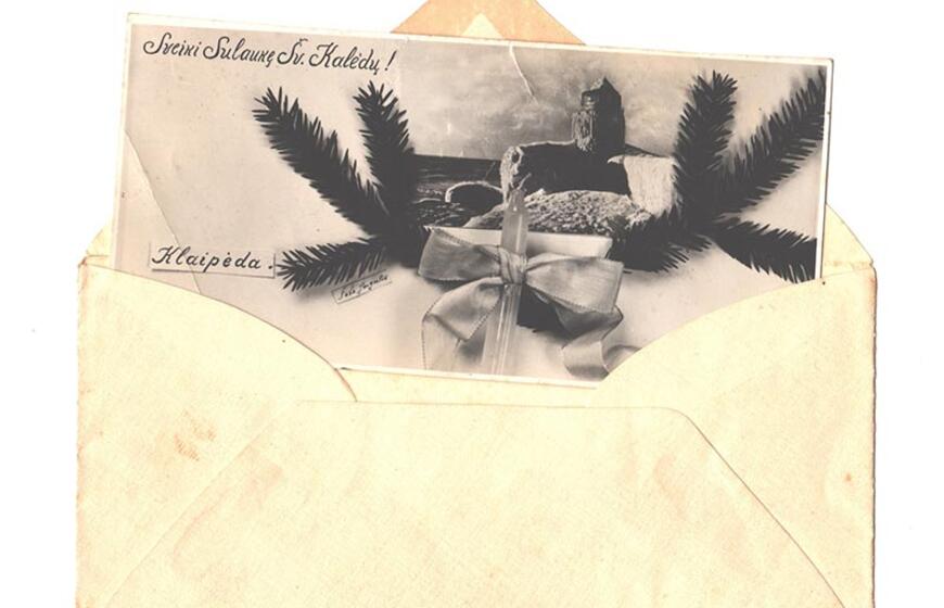 © 1935-1939 m. Klaipėdoje dirbusio fotografo Kosto Jogučio sukurtas kalėdinis atvirukas su Baltuoju švyturiu. Vido Stonkaus kolekcija. Deniso NIKITENKOS nuotr.