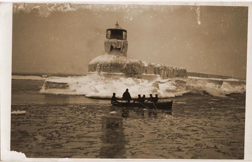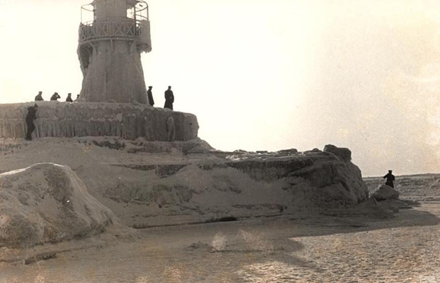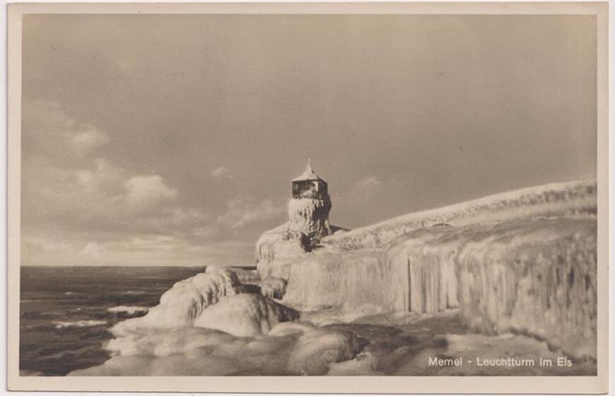 © Žiemą švyturys atrodydavo tarsi dekoratyvi, apsilydžiusio balto vaško žvakė. Išskirtiniai vaizdai viliojo atvirukų leidėjus. Deniso NIKITENKOS kolekcija.