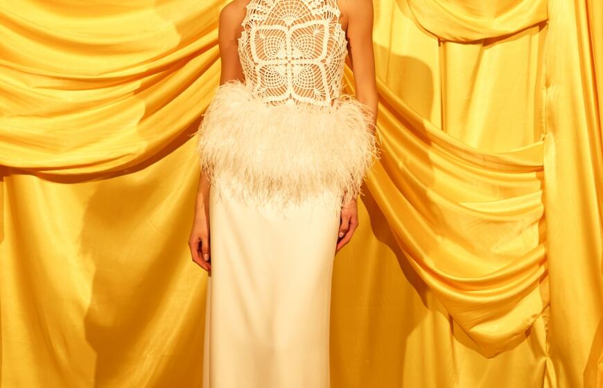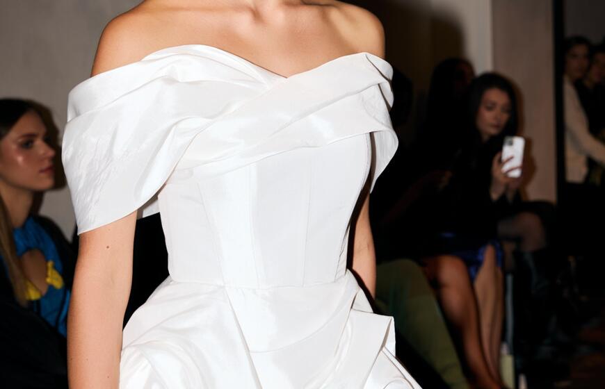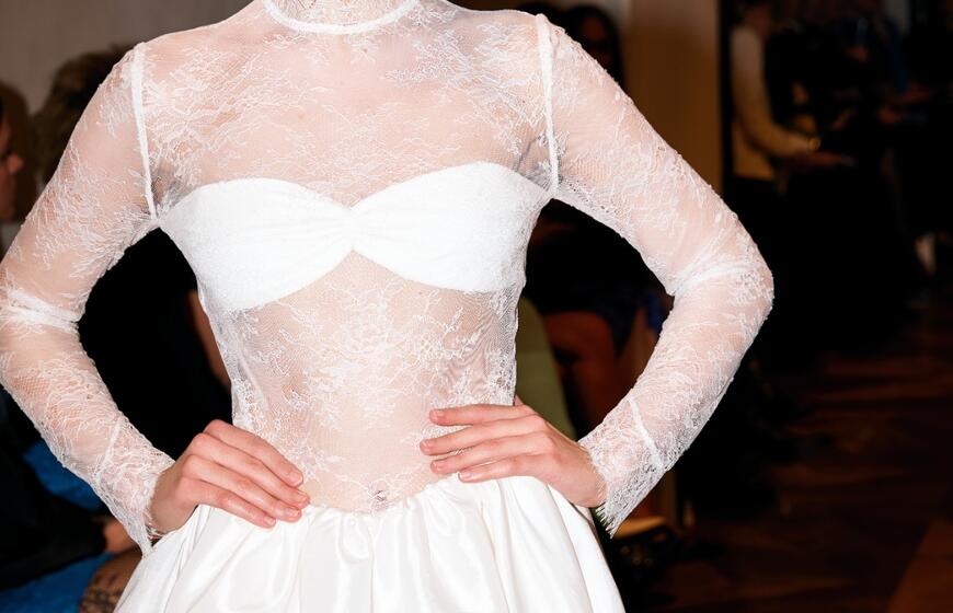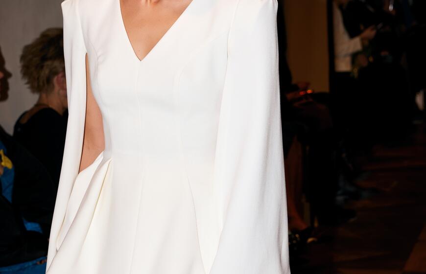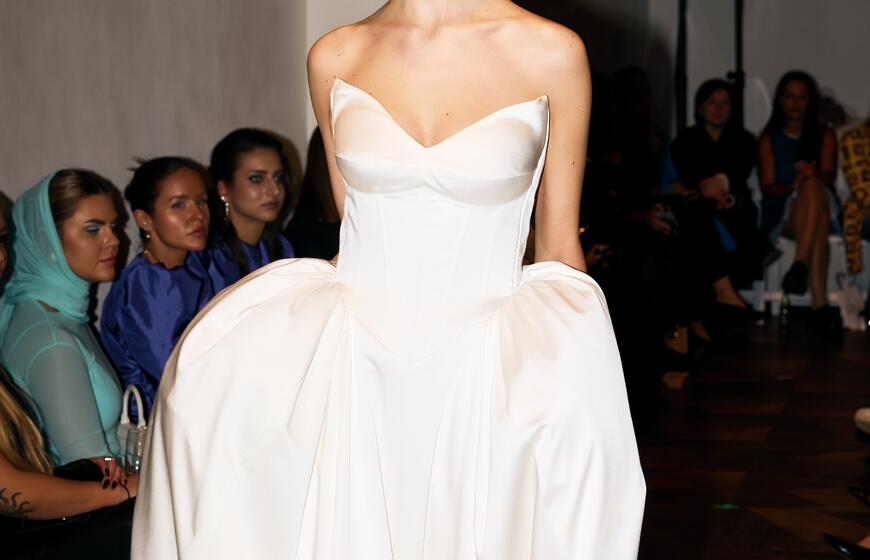 Drabužių dizainerė Rimantė Rimgailaitė pristatė vestuvinių drabužių kolekciją: ant podiumo sabražas ir jaunavedžių tortas