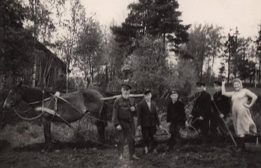 © Bulvių sodinimas Vabalų k. 1965 m. Asmeninio albumo nuotr.