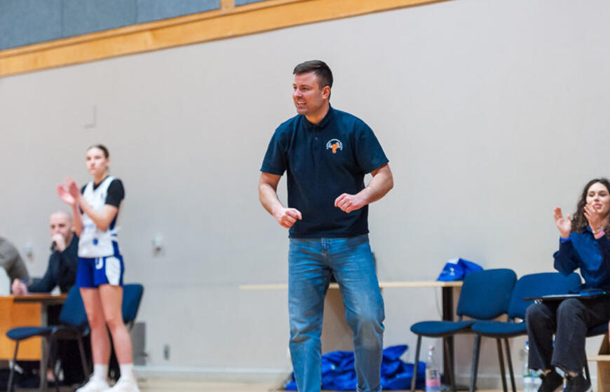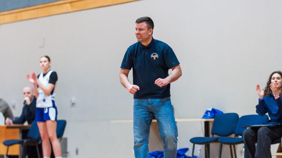 STRATEGAS. Klaipėdos krepšinio mokyklos trenerio Tomo Tupalskio emocijos atspindi, kaip jis stengiasi ir išgyvena, kad jo komanda iškovotų pergales. Lietuvos moksleivių krepšinio lygos nuotr.