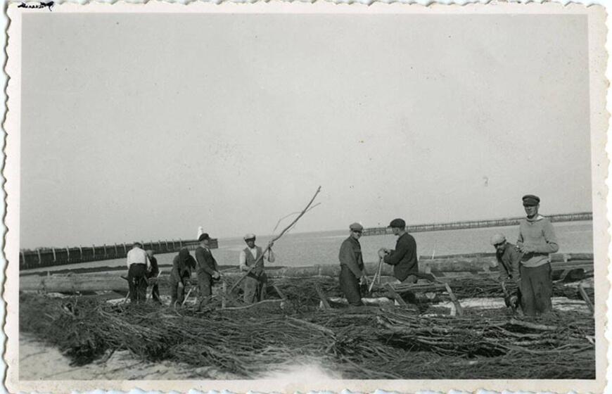 © Žabų tvorelėmis sutvirtinamas uosto pakrančių smėlis (XX a. 4 deš.). Lietuvos jūrų muziejus.