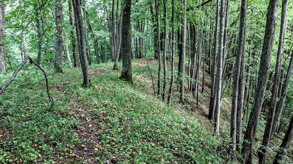 © Vyskupiškių piliakalnis (Klaipėdos r.), kuris ištįsęs beveik 300 metrų ir vienoje vietoje Graužulio upelio tarsi perskeltas į dvi dalis. Deniso NIKITENKOS nuotr.