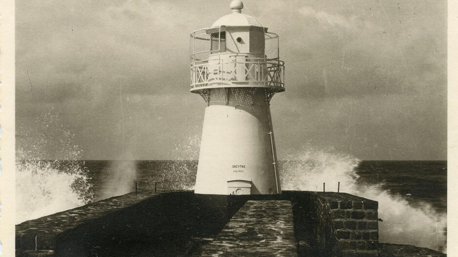 Buvęs Klaipėdos ir Lietuvos marinistinis simbolis: šiaurinio molo Baltasis švyturys. Užrašas ant jo byloja, jog šviežiai nudažytas likus 3 dienoms iki Jūros šventės. Mažosios Lietuvos istorijos muziejaus rinkinys.