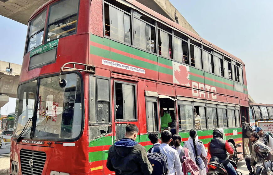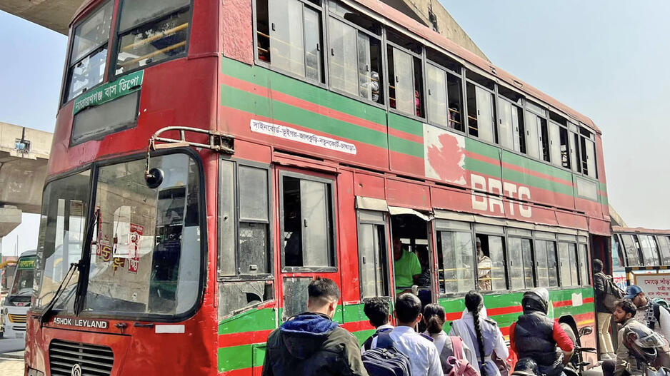 © Kur savo gyvenimą užbaigia senieji Londono dviaukščiai autobusai? Bangladešo sostinėje Dakoje!