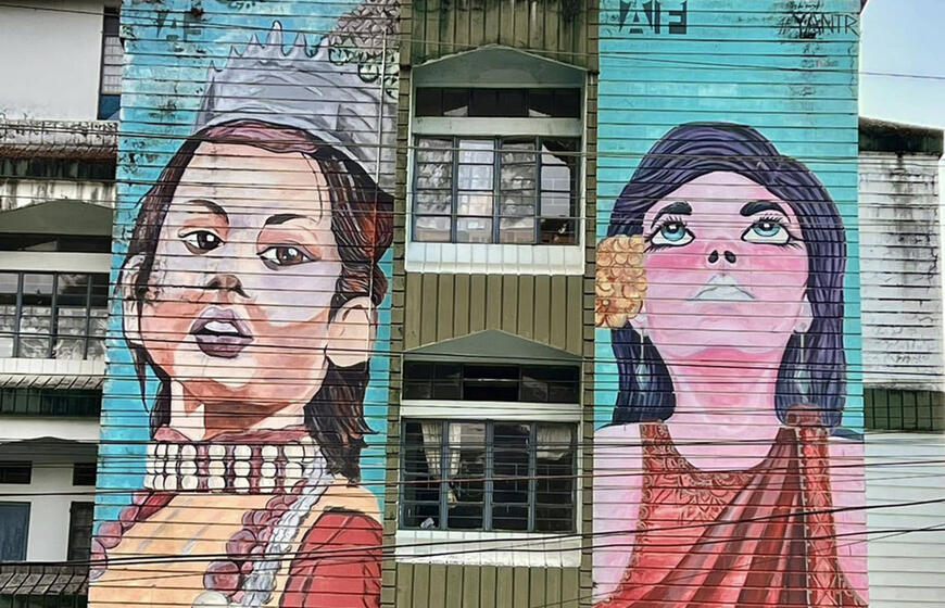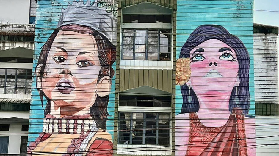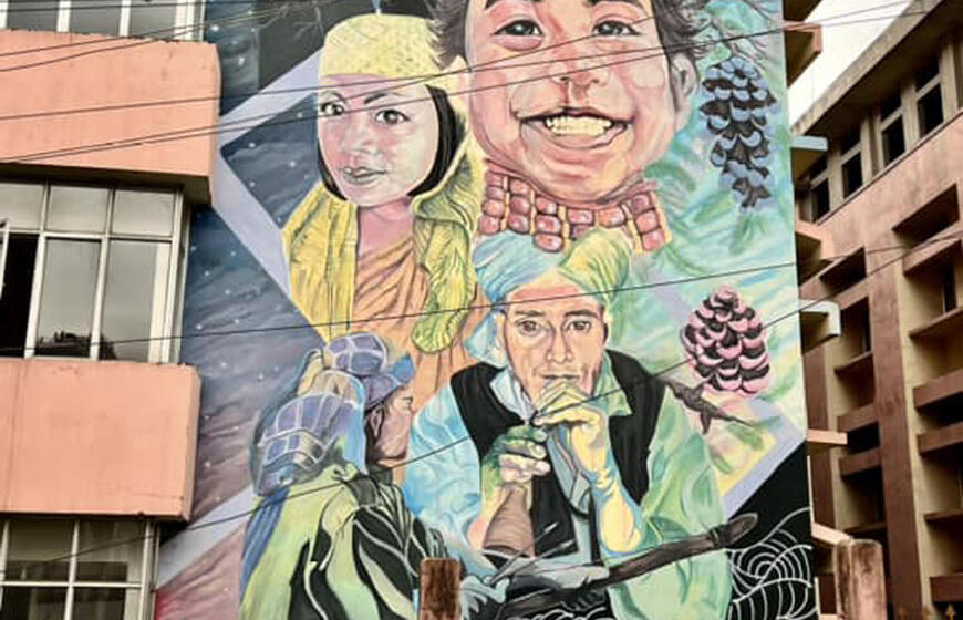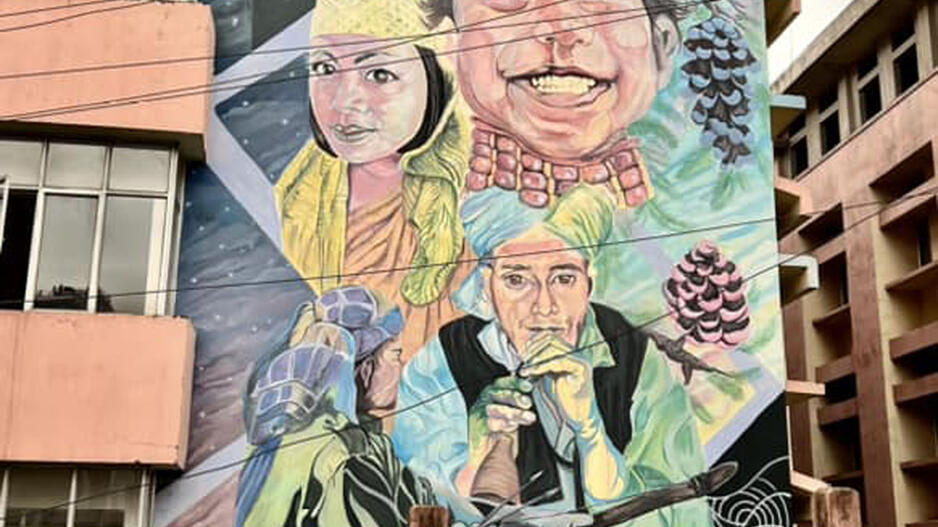 © Gatvės piešinys, vaizduojantis senovinį Khasi žmonių gyvenimą.