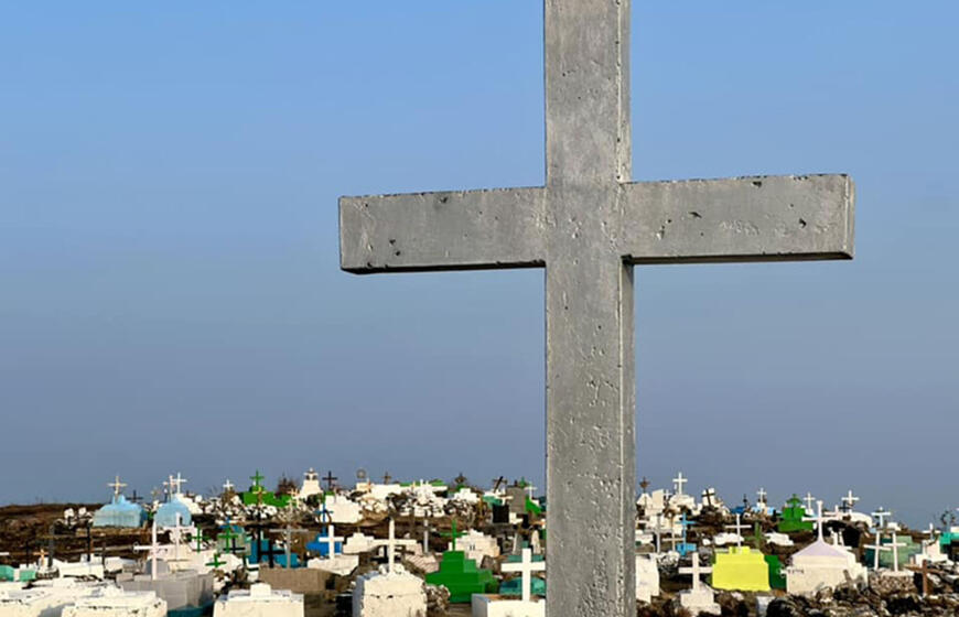© Labai neįprastas Indijos peizažui vaizdas - keliautojas matė daugybę krikščioniškų kapinaičių.