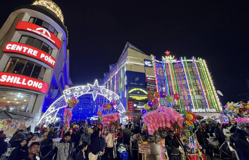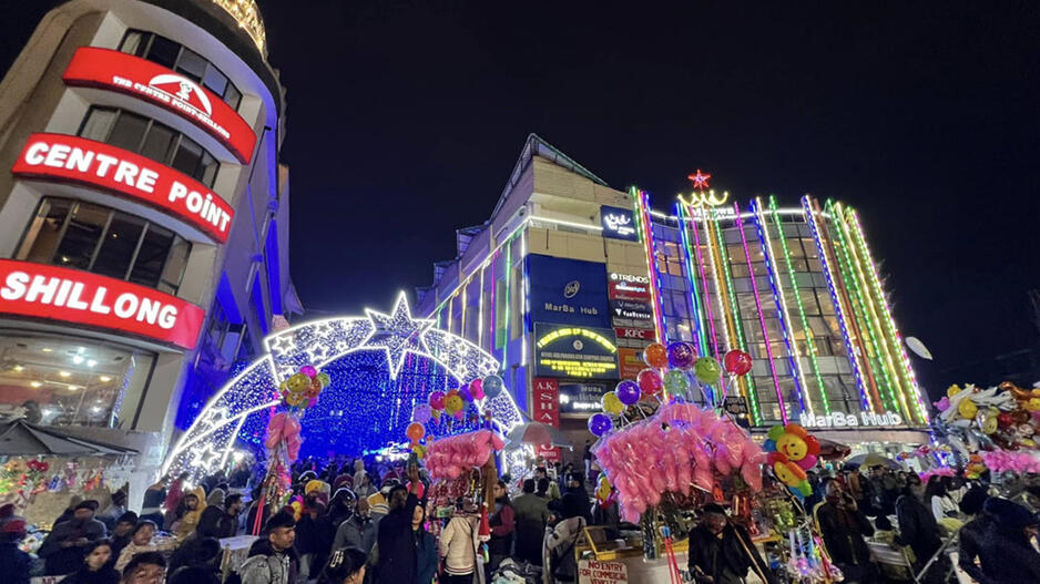 © Bendra nuotrauka su vietinėmis šiuolaikiškai apsirengusiomis Khasi etninės grupės krikščionėmis šalia miesto katedros.