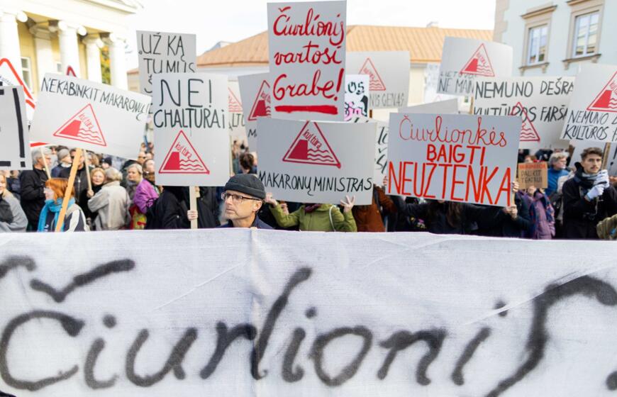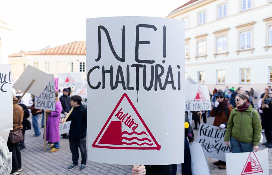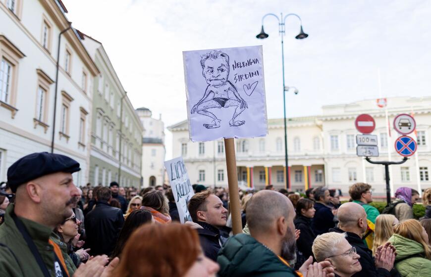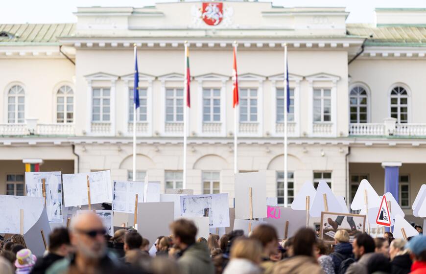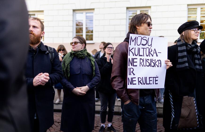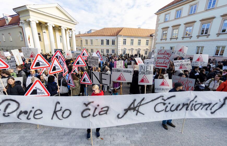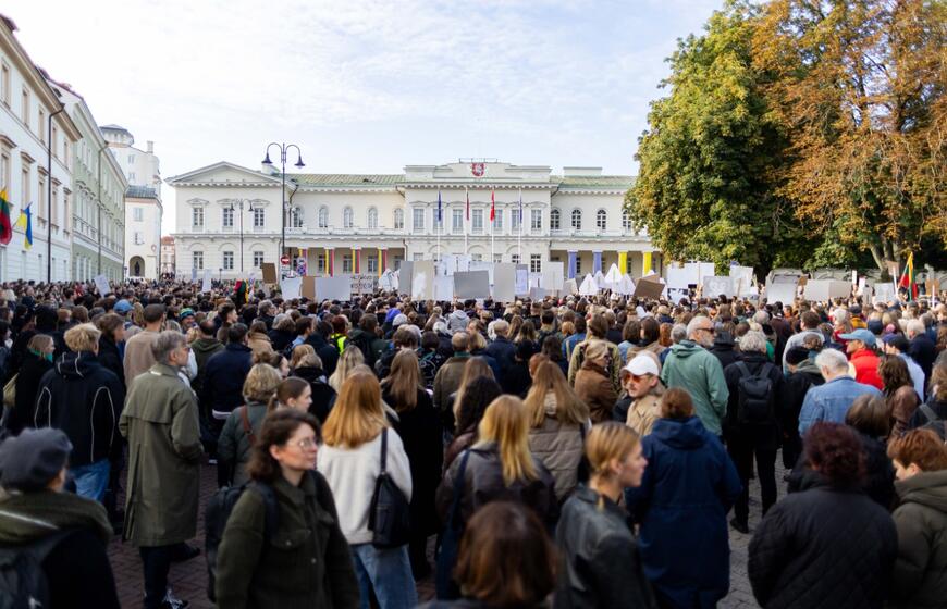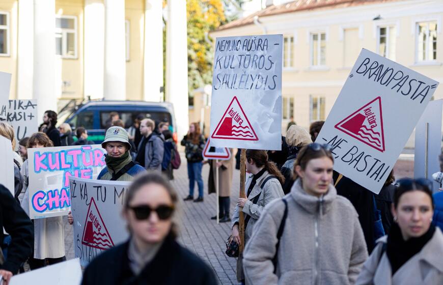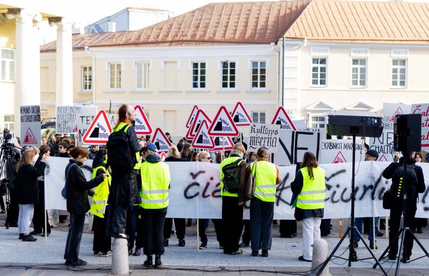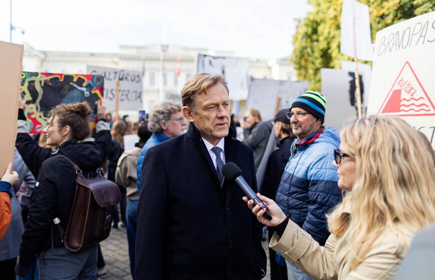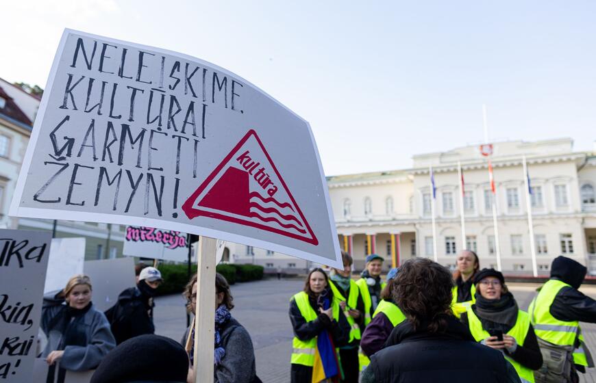 Prie Prezidentūros – kultūros bendruomenės protestas dėl naujojo ministro: „Nemuno dešra – kultūros faršas“