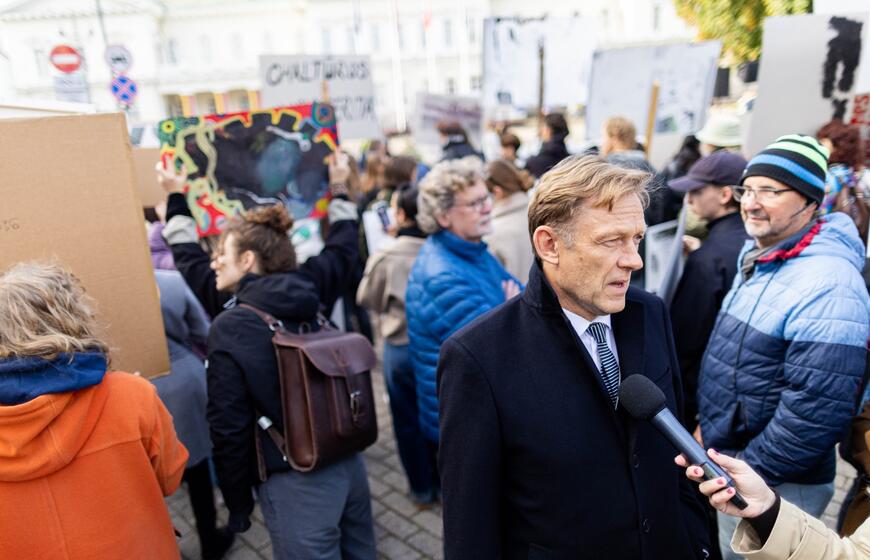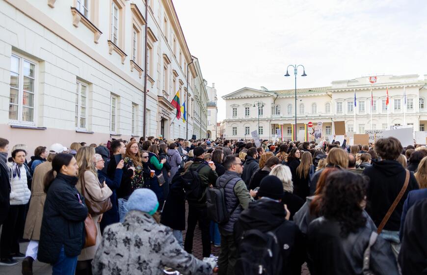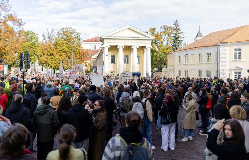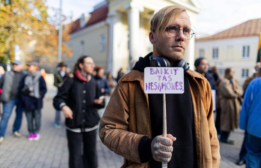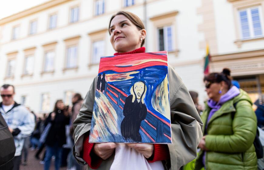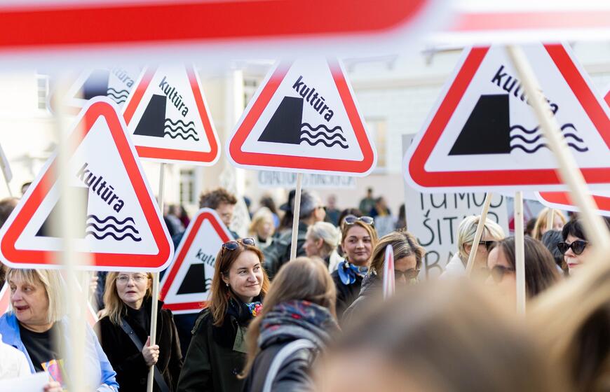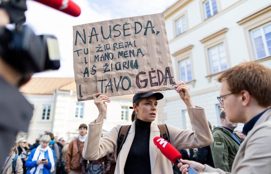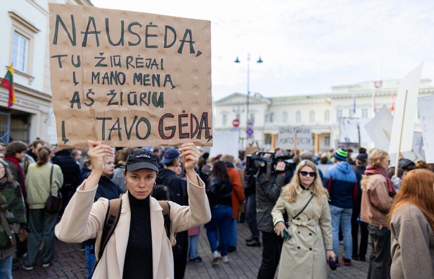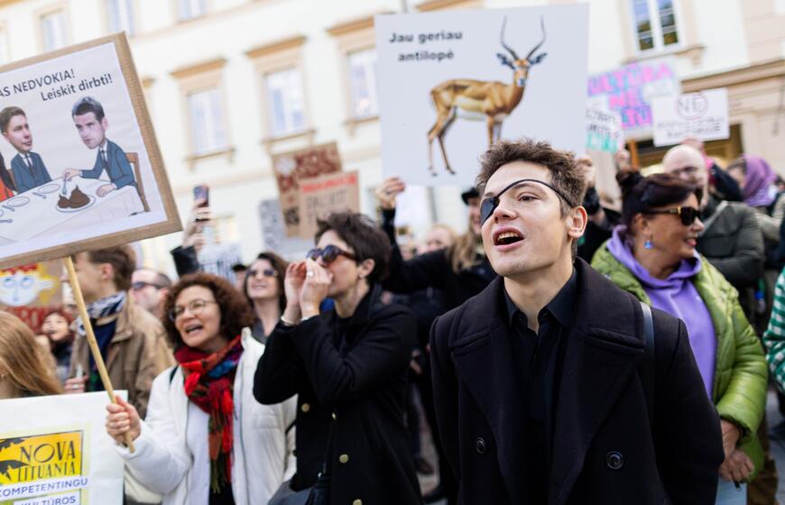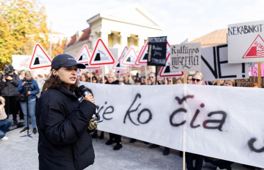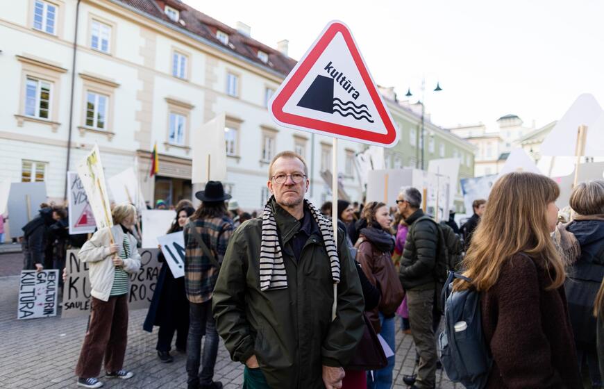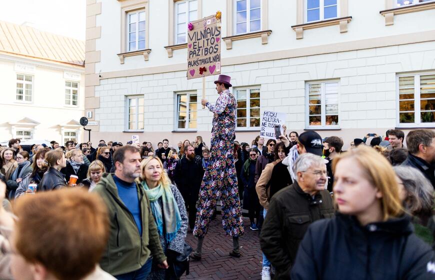 © Kultūros bendruomenės protestas dėl kandidato į kultūros ministrus ir šios ministerijos perdavimo „Nemuno aušrai“. ELTA / Žygimantas Gedvila