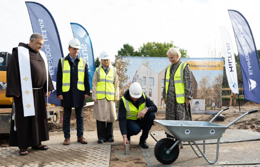 Įkasta naujai statomo Klaipėdos licėjaus vaikų darželio kapsulė su laišku ateities kartoms