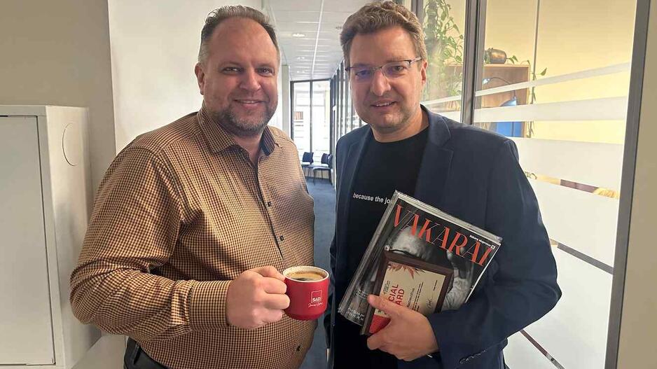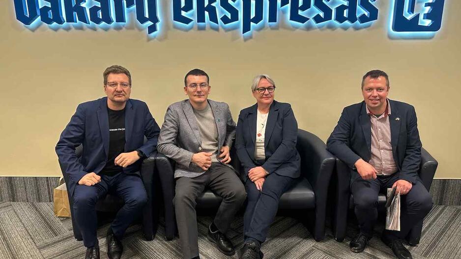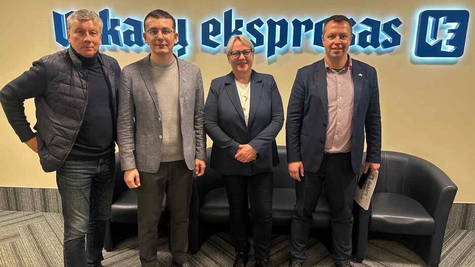 VIZITAS. „Vakarų ekspreso“ redakcijoje lankėsi Ukrainos nacionalinės žurnalistų sąjungos prezidentas Sergiy Tomilenko (antras iš kairės) ir Baltarusijos žurnalistų asociacijos pirmininko pavaduotojas Baris Haritski (pirmas iš dešinės). Su jais atvyko Lietuvos žurnalistų etikos inspektorius Dainius Radzevičius (pirmas iš kairės) ir Lietuvos žurnalistų sąjungos Klaipėdos apskrities pirmininkė Jolanta Beniušytė.