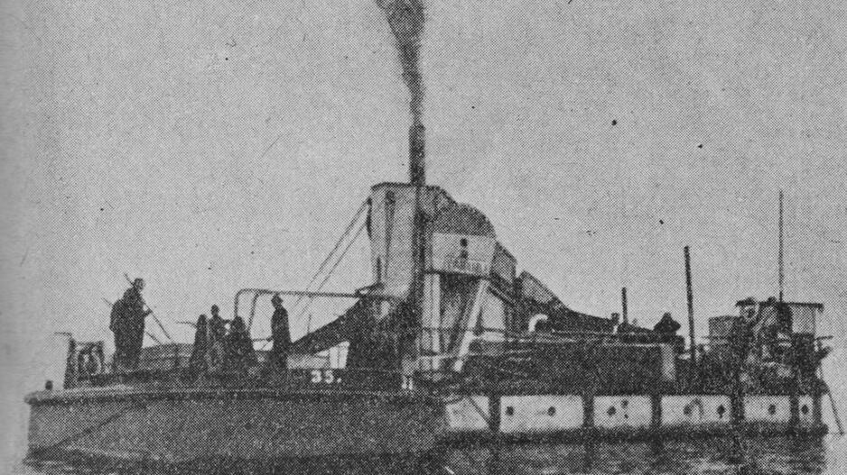 © Šioje unikalioje nuotraukoje įamžinta 1928-1929 m. Juodkrantėje Kuršių mariose gintarą kasusi žemsemė „Dangė“. Deniso NIKITENKOS archyvas.
