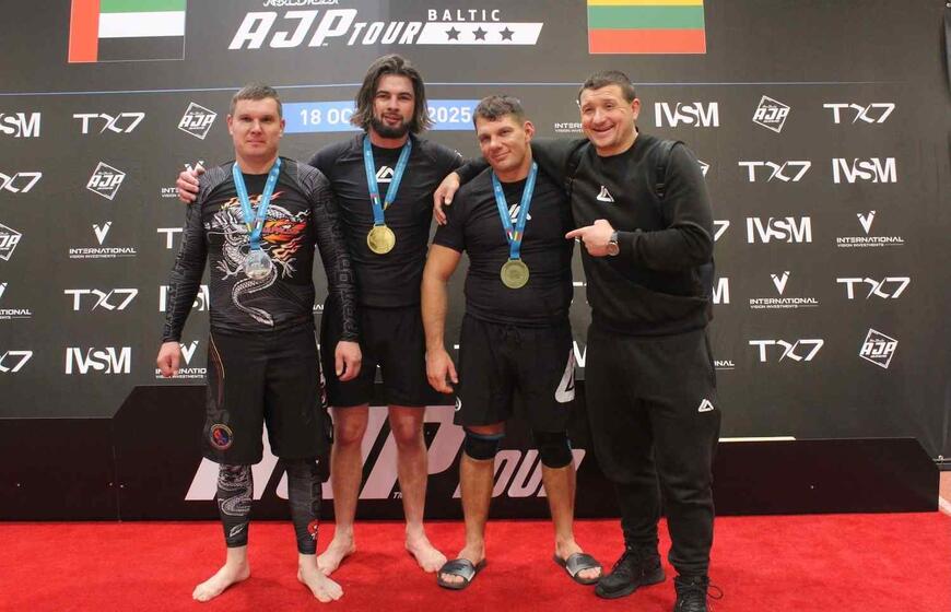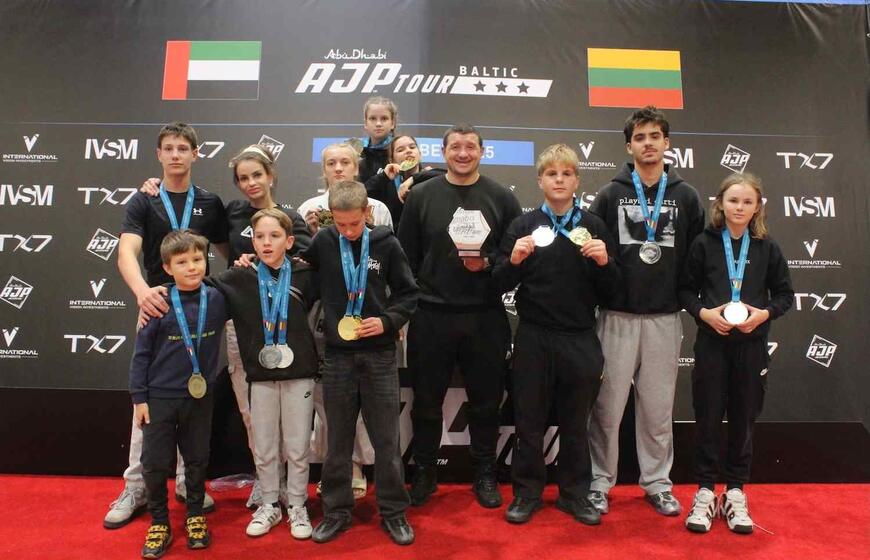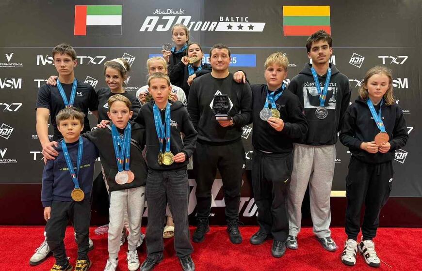 KLAIPĖDOS ATSTOVAI. Vilniuje vykusiame tarptautiniame „AJP TOUR Baltic Regional Championship 2025“ turnyre laurus skynė tiek mūsų miesto jaunieji, tiek jau suaugusieji Klaipėdos „Roger Gracie Academy“ komandos nariai.