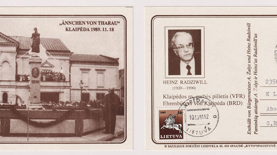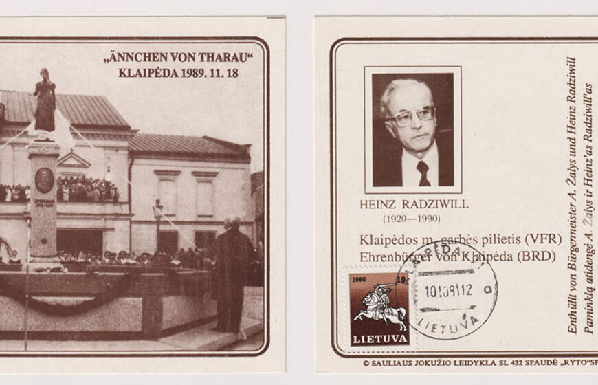 Tai prilygo sensacijai. Ir akibrokštui tarybinei valdžiai. Skulptūros atidengimo šventė 1989 m. lapkričio 18 d. sutraukė į Teatro aikštę šimtus žmonių. Ypač didelė šventė buvo seniesiems klaipėdiškiams. Originalaus atviruko aversas (kairėje) ir reversas.