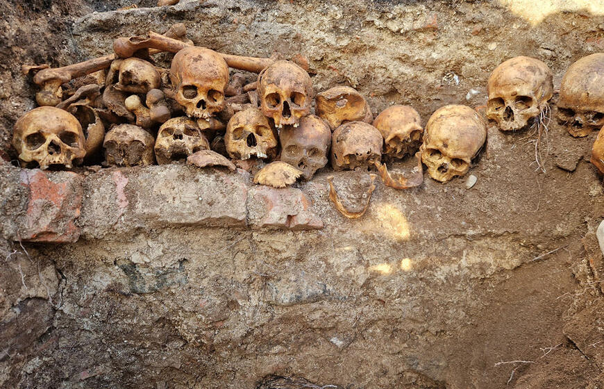 © Toks kiekis žmonių kaukolių rastas iškasus vos 1 kv. m šurfą, tad po žeme liko dar daugiau. Jurgio SADAUSKO nuotr.