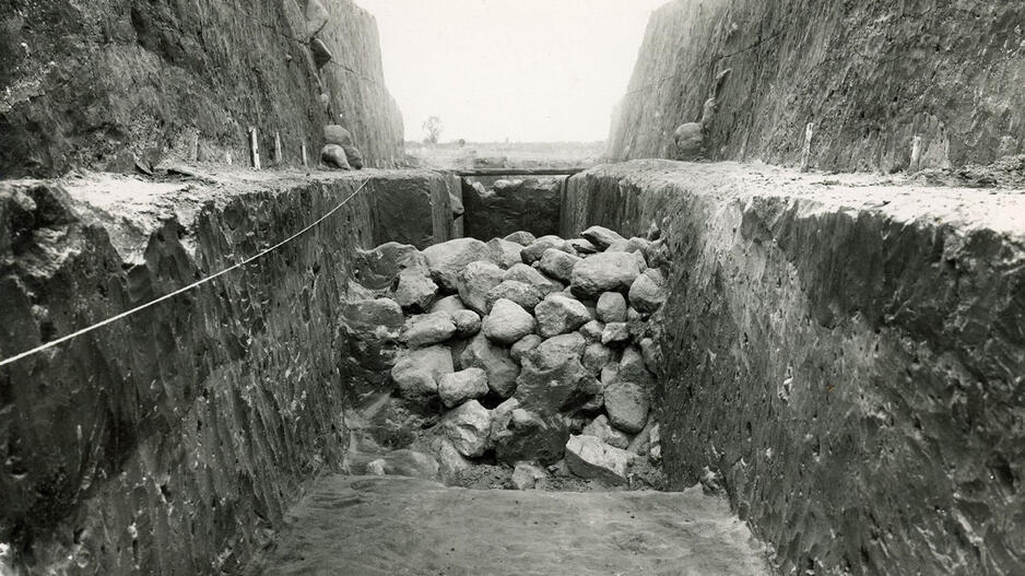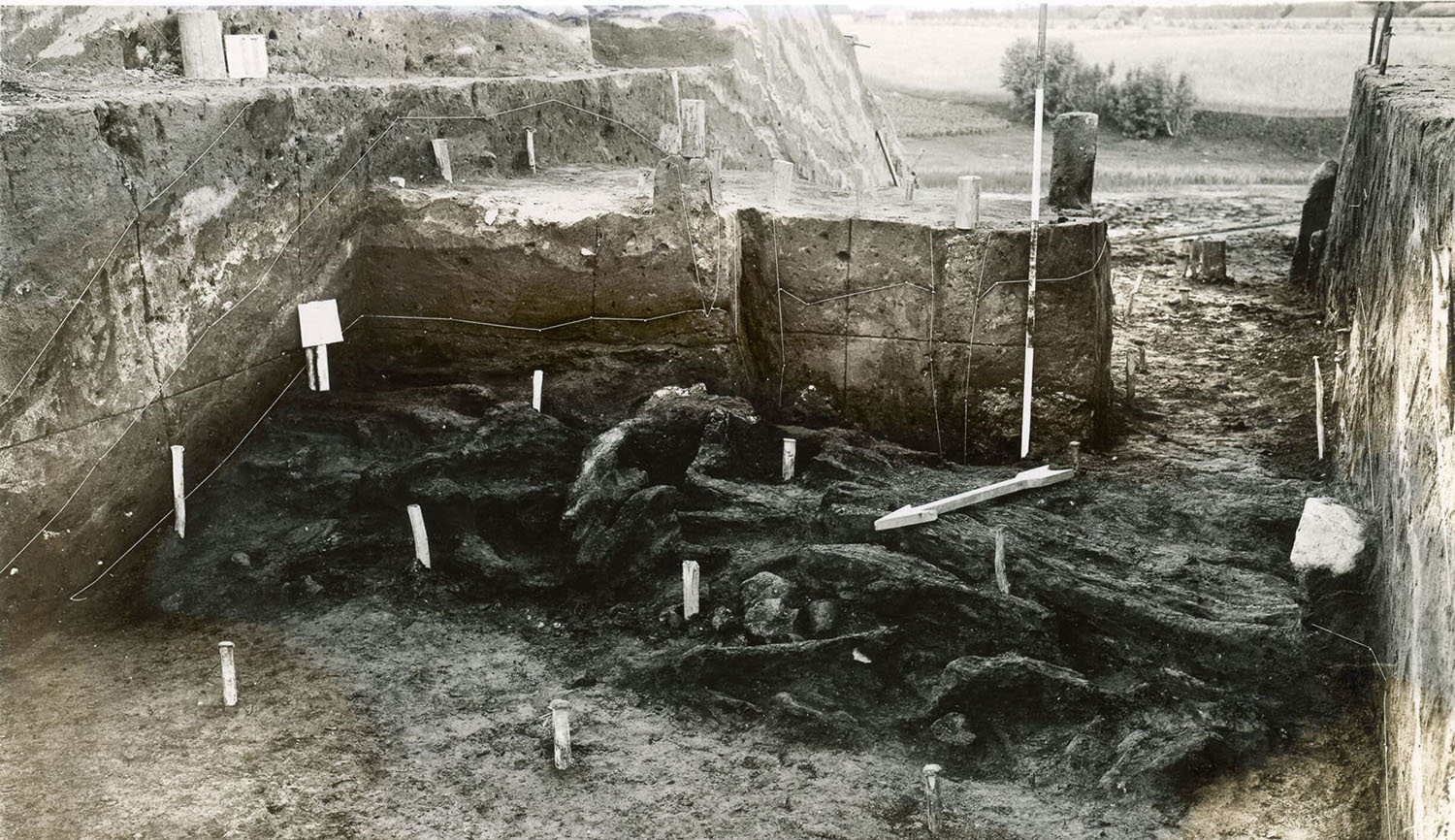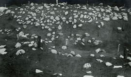 © Seni metodai: archeologų atkasti akmenys (piliakalnio pylimo sutvirtinimai) nudažyti kalkėmis. Kad geriau matytųsi. Nufotografuodavo, nurinkdavo ir tirdavo toliau. Utenos kraštotyros muziejaus fotografijos rinkinys