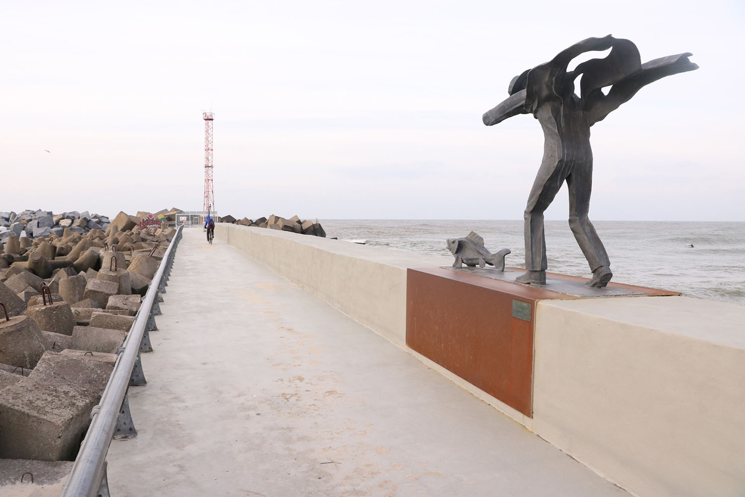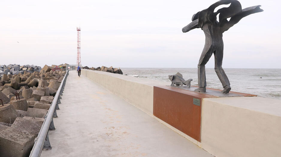 Uosto direkcija ant molo leido primontuoti skulptūrą, kuri yra laikinoji konstrukcija, tačiau idėjai lygiai tokiu pačiu principu pastatyti Baltąjį švyturį prieštarauja. Deniso NIKITENKOS nuotr.