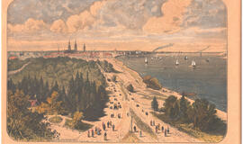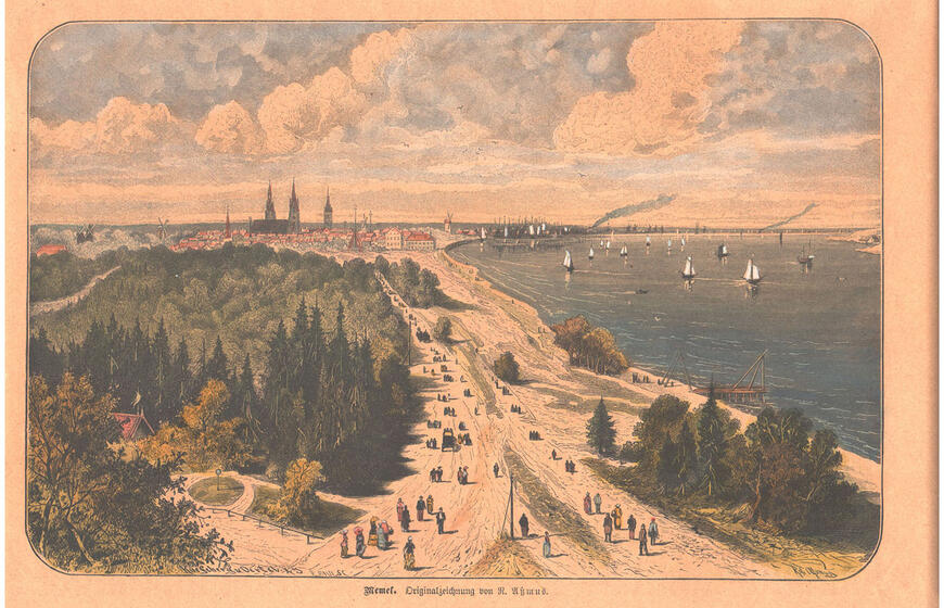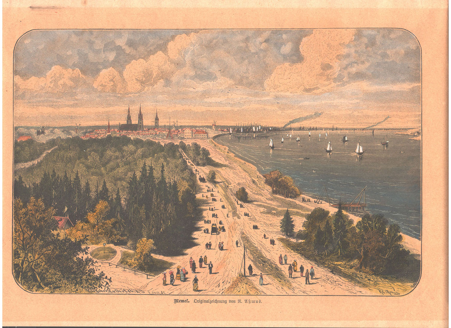 XIX a. pamariu iki pat Raudonojo švyturio driekėsi pėsčiųjų promenada, kuria su vaikais mėgo pasivaikščioti ir karalienė Luizė. 1885 m. Roberto Assmuso medžio graviūra. Deniso NIKITENKOS kolekcija