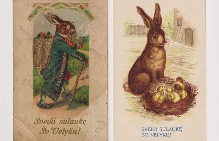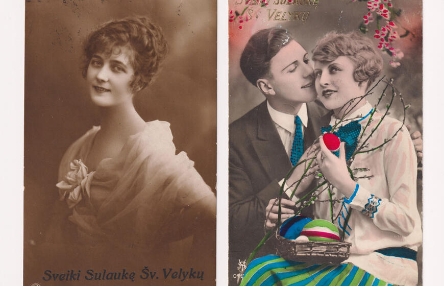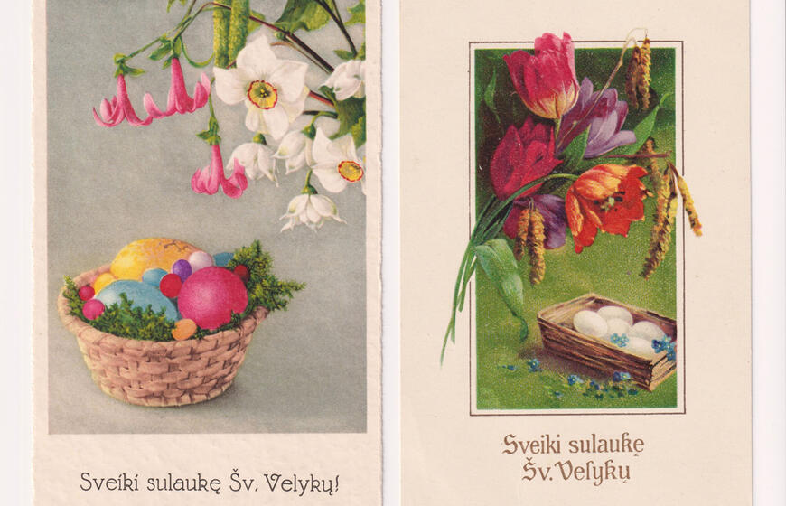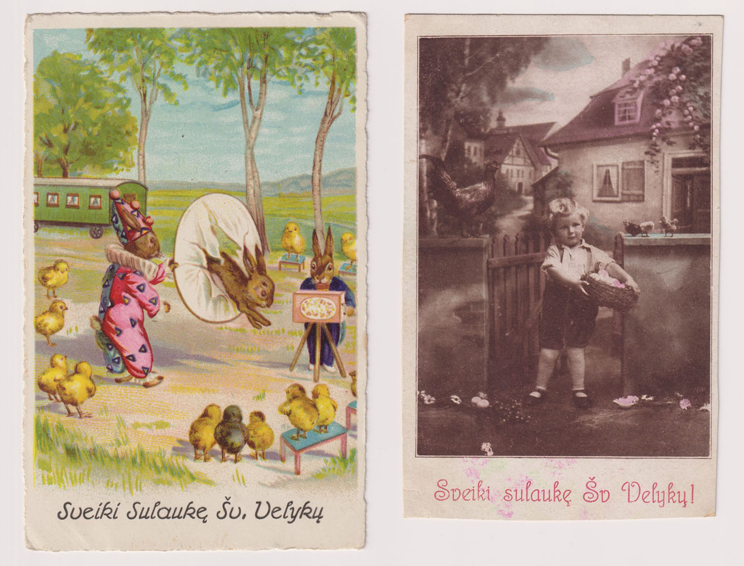 „Joneli, sveikinu su Šv. Velykomis ir linkiu, kad kitų šv. sulaukus išsipildytų Jūsų sumanymai, ir būtumėt jau nebe vienas.“ Toks įrašas puikuojasi ant vieno iš šių XX a. 3 dešimtmečio atvirukų.