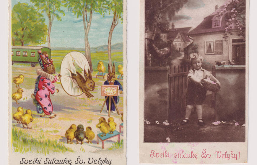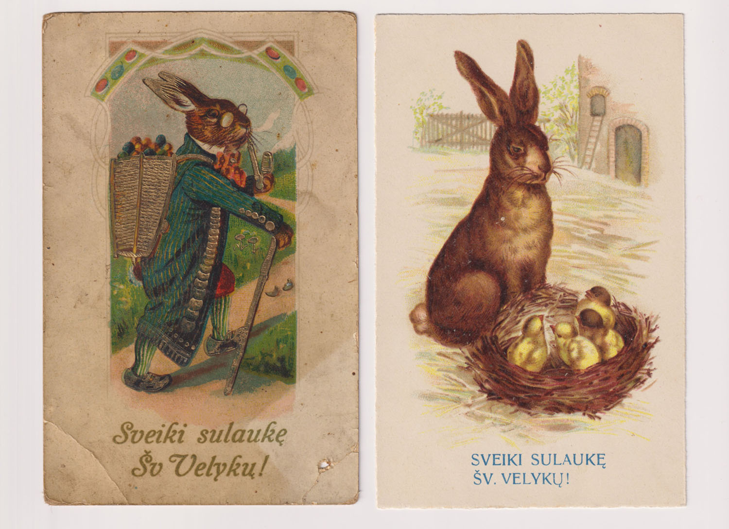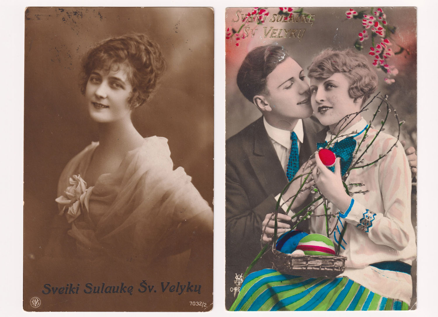 „Broliuk! Linkiu tau ant Velykų daug gardžių pyragaičių ir dar daugiau gražių margučių gaut ir laimėt! Tavo sesuo Erna. 1924 m.” – toks įrašas išliko dešiniajame atviruke.