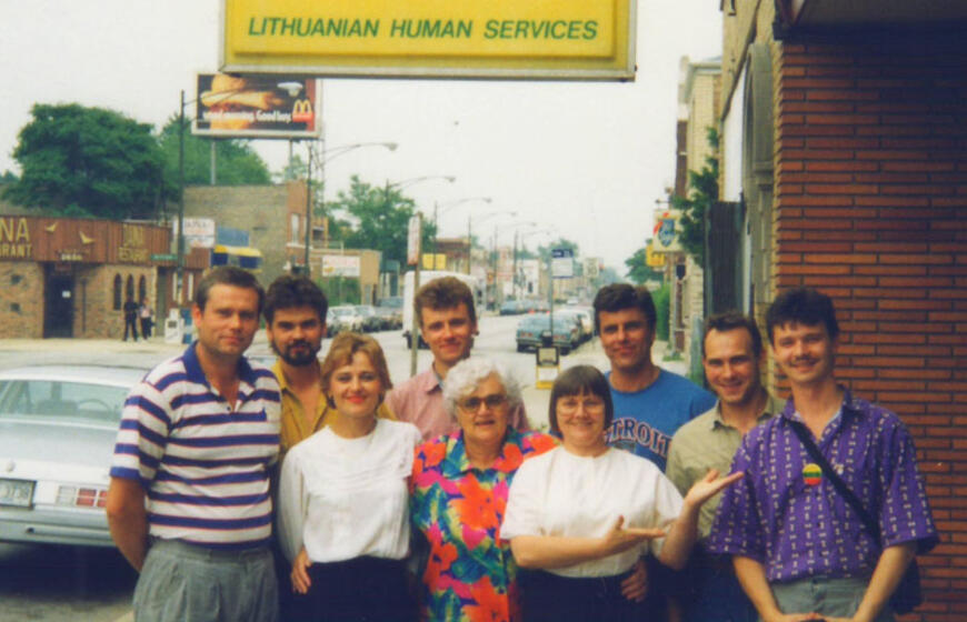 ČIKAGOJE. Su „Seklyčios“ šeimininkėmis. „Kapitonas Stulpinas“ stovėjo uoste netoli Čikagos, tad įgulos nariai nuvyko į jos rajoną Marquette Park, kuriame anksčiau gyveno daug lietuvių, ir pietavo „Seklyčioje“.