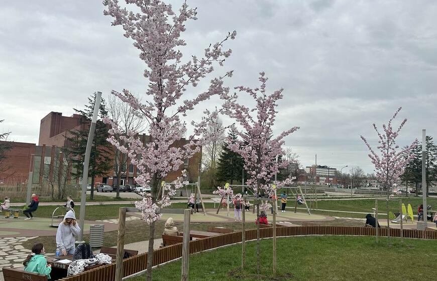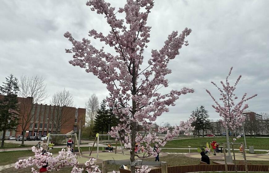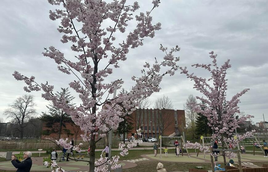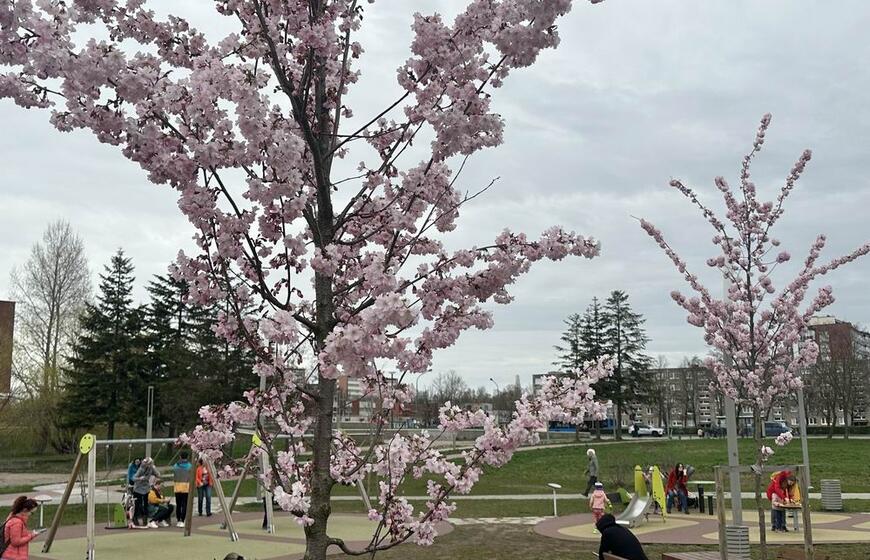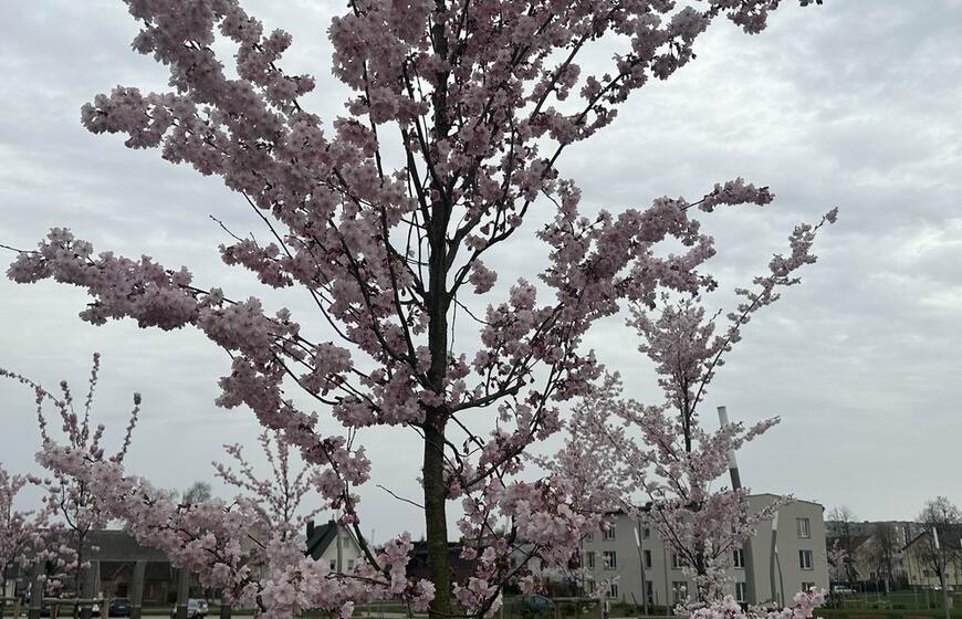 Klaipėdiečiai grožisi pražydusiomis sakuromis