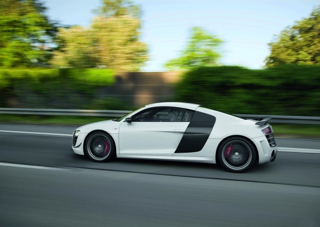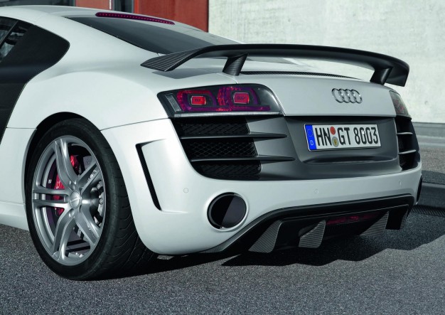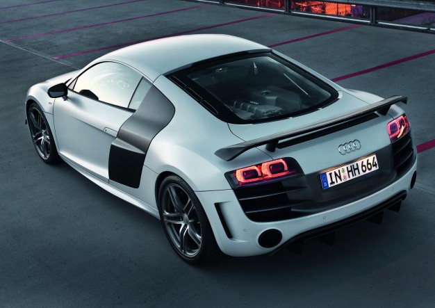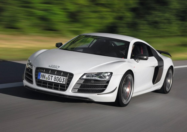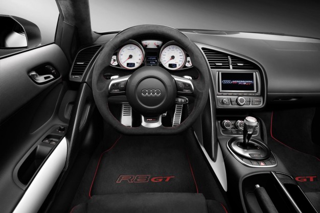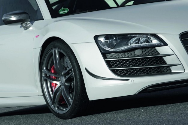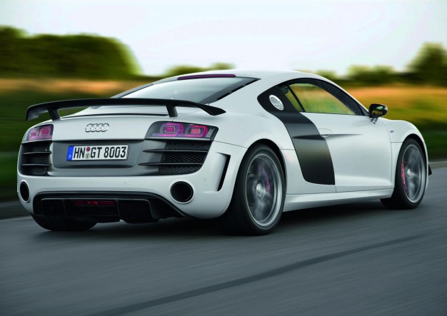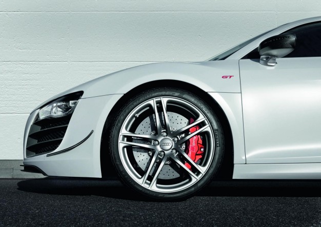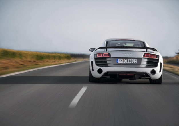 Nuo nulio iki 100 km/h automobilis įsibėgėja per 3,6 sek., didžiausias jo greitis - 320 km/h. Tokie duomenys pasiekti svorį sumažinus 100 kg - buvo sumontuotas plonesnis galinis stiklas, plastikinės stiklo pluošto sėdynės. Dabar R8 GT sveria 1 525 kg.