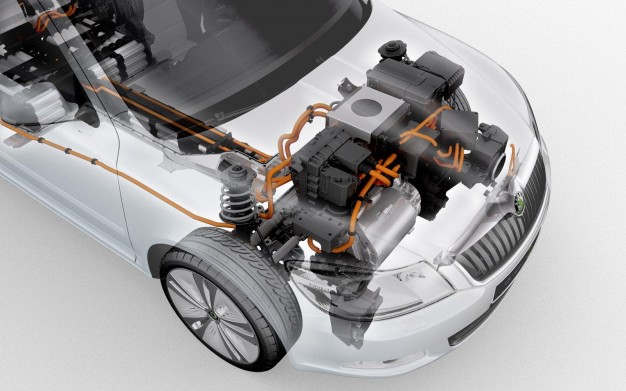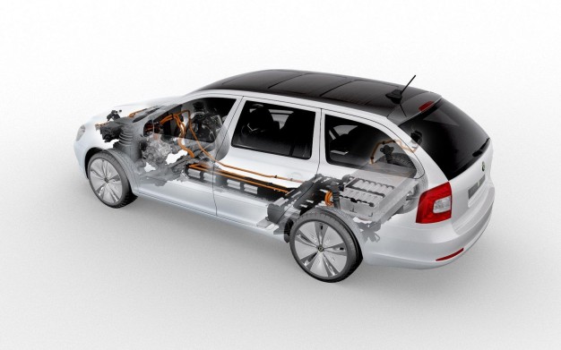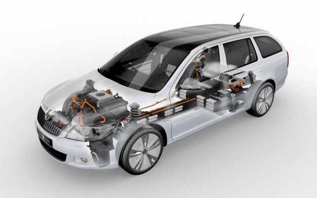 Energija "Škoda Octavia Green E Line" motorui sklinda iš 180 ličio jonų baterijų, kurių bendras svoris - 315 kg. Šios baterijos sumontuotos grindyse, kad bagažinėje lieka daug vietos kroviniams. Vieno baterijų įkrovimo užtenka nuvažiuoti 140 km.