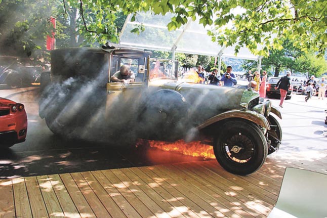 O štai gegužę aukcione, surengtame Itįalijoje, tradicinio automobilių grožio konkurso Villa d'Este vietovėje metu, sudegė (nuotraukoje) 1929 m. laidos "Bentley", vertinamas 540 tūkst. eurų (1,86 mln. Lt). Iš viso pasaulyje buvo išlikę 20 tokių mašinų. Beje, gaisro metu vos pavyko išgelbėti šalia stovėjusius retus "Ferrari" modelius - "Enzo", F50, F40 ir 288 GTO.