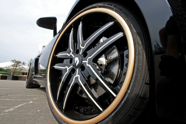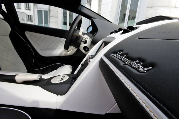 Automobilis papuoštas baltomis ir aukso spalvos juostomis, salone - juoda ir balta oda. Žibintų ir langų stiklai tonuoti.