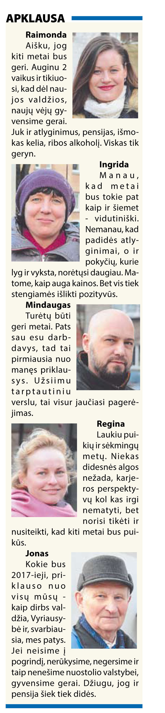 Nors verslininkai ateinančius metus laiko nežinomybės metais, pensininkai ir paprasti gatvėje sutikti žmonės geros nuotaikos ir optimizmo nestokoja.