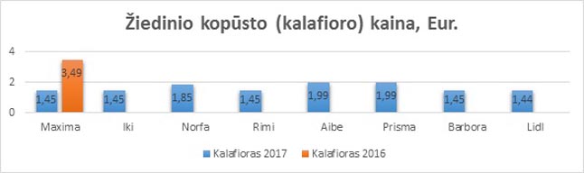 Žiedinio kopūsto (kalafioro) kainos buvo užfiksuotos balandžio 28 d. atliekant kasmėnesinį „Pigiausių maisto produktų krepšelio“ ir „Žinomų maisto prekinių ženklų“ kainų tyrimą prekybos centruose „Maxima“, „Iki“, „Norfa“, „Rimi“, „Lidl“, „Aibė“, „Prisma“ bei internetinėje parduotuvėje „Barbora“.