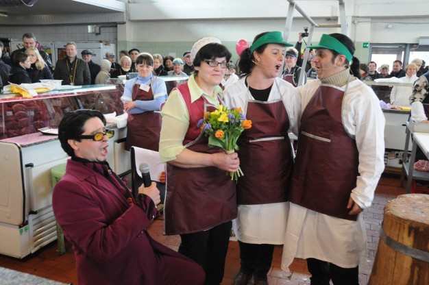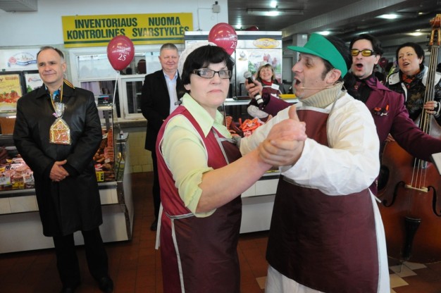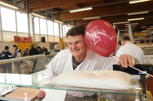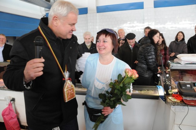 Žuvų salėje prekeivė Jolanta Gražulytė, čia dirbanti 15 metų, šventė šeštadienį savo 45 gimtadienį. Kai sulaukė gėlių ir iš mero rankų ir jo bučinio į skruostą, moteris net apsiverkė. Buvo pagerbta ir jos kolegė Virginija Antužienė, šiame turguje prekiaujanti nuo 1993 metų. Gaila buvo jaunos mamos su vežimėliu atskubėjusios nusipirkti žuvyčių ir patekusios š tokį bruzdesį. Bet piktų nei pirkėjų, nei pardavėjų nebuvo.