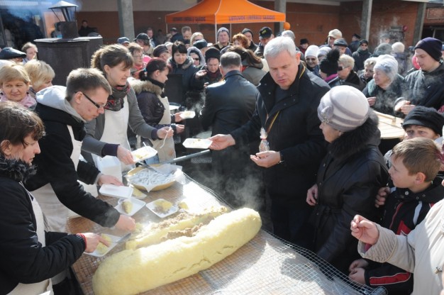 O kokios ovacijos pasipylė, kai pagaliau iš puodo buvo traukiamas tas rekordinis gero paršelio dydžio cepelinas. Paragauti jo norinčiųjų buvo tikrai nemažai.