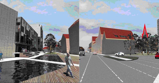 Šiaurinėje sklypo dalyje numatomi 2-3 aukštų su mansarda pastatai. Pirmuose aukštuose būtų įrengiamos komercinės paskirties patalpos, kuriose galėtų įsikurti kepyklėlė, dailės reikmenų salonas, avalynės taisykla, juvelyrinių dirbinių salonas, galerija.