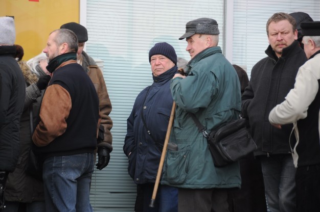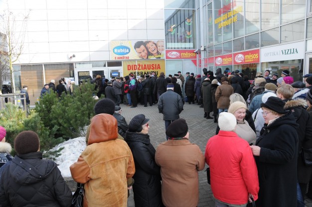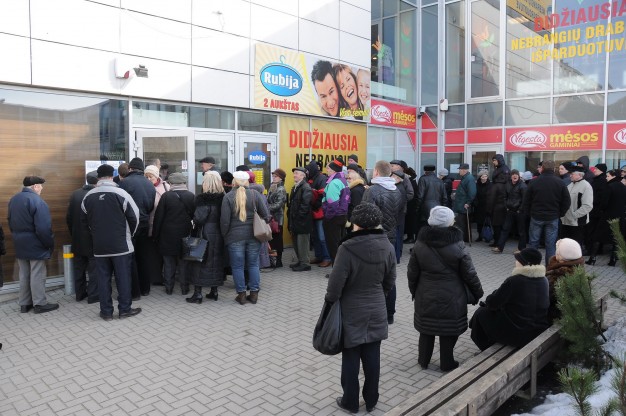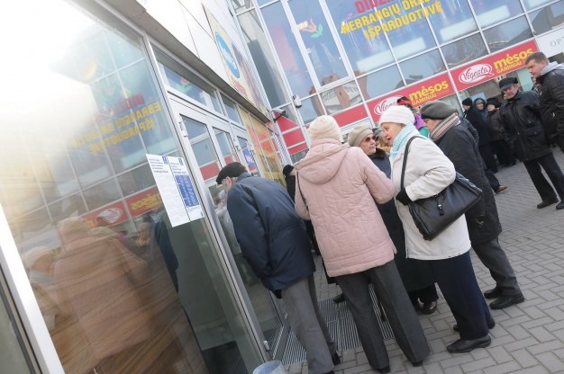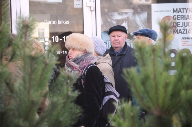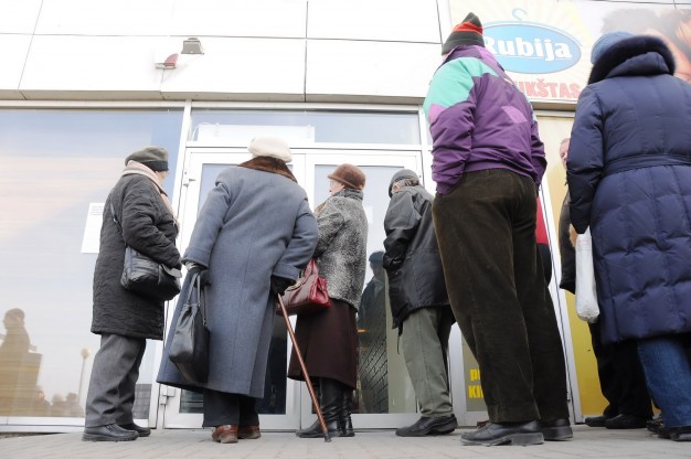 "Už butą reikia mokėti, valgyti norisi", - kalbėjo eilėje laukiantys žmonės, daugiausiai iš jų - vyresnio amžiaus.