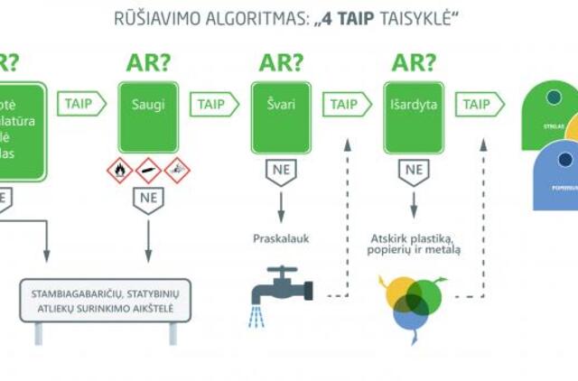 J. Nacevičienė apibendrina, kad rūšiuojant svarbu sau užduoti tik keturis klausimus, į kuriuos atsakius „taip“, atliekos drąsiai gali keliauti į rūšiavimo konteinerius. Be to, įsidėmėjus šias paprastas keturias taisykles, atliekų rūšiavimas taps kur kas paprastesnis.