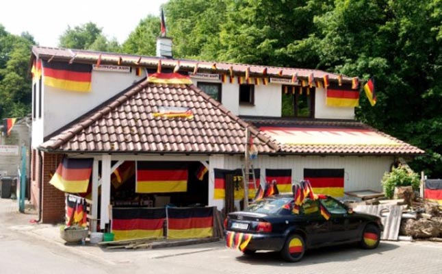 Vokietis futbolo aistruolis iš Maubacho miesto Pietų Vokietijoje pasiruošė pasinerti į futbolo aistras papuošdamas savo namą ir mašiną Vokietijos vėliavomis.