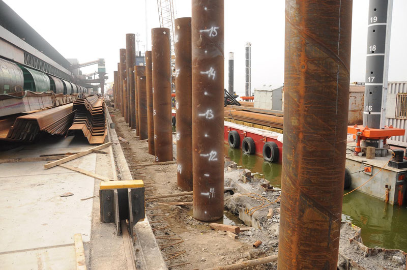 Šioje krantinėje jau yra sukalta apie 2 tūkstančius tonų metalo gaminių. Kalami ne tik įlaidai, bet ir vamzdiniai poliai, ant kurių dar bus dedamos gelžbetoninės 1 metro storio plokštės, kad sumažintų apkrovas į krantinę. Darbus, kurie kainuos apie 3,4 mln. eurų, ketinama baigti dar šiemet, "priduoti" - kitų metų sausio pradžioje. Gilinimo darbus prie krantinės iki 14,5 m atliks jau kitas rangovas, laimėjęs kitą konkursą.
